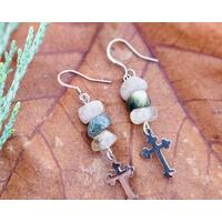 Black Obsidian Crosses dangle on gold arrow chain and Shephard hooks. Dress them up or dress them down, simple and beautiful for any occasion.